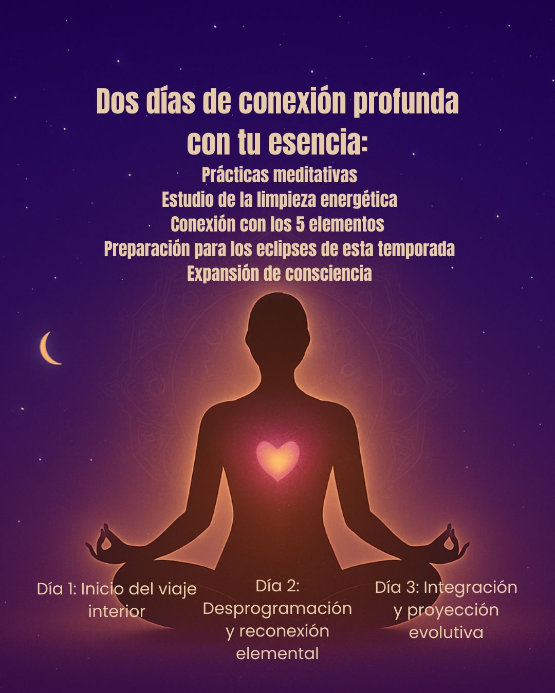 - 19:00 – 20:45 | Meditación lunar (Luna Nueva en Virgo) Tinaja Caliente entre las estrellas.
